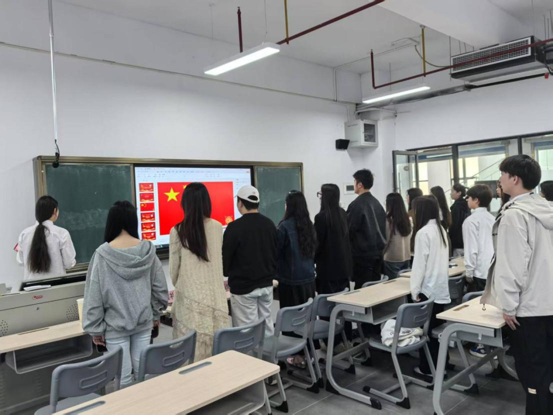仪式伊始,全体人员肃立,奏唱国歌,随着庄严国歌响起,热血沸腾的青春身影眼中闪烁着对祖国的热爱和对未来的憧憬。