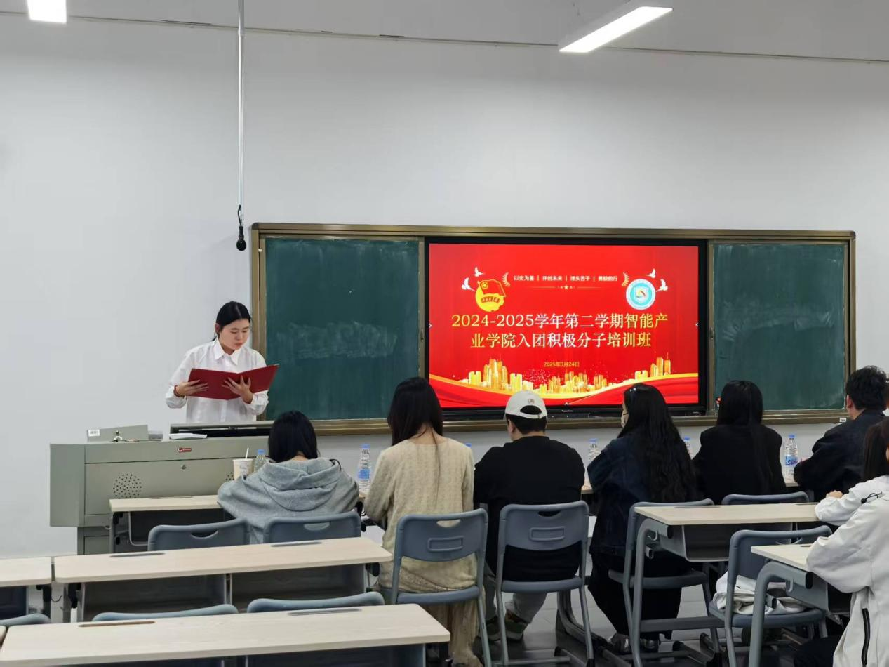 为全面践行习近平新时代中国特色社会主义思想,紧跟党的指引方向,进一步加强入团积极分子的政治思想观念,智能产业学院于2025年3月24日在文岭校区教学楼C307召开2024-2025学年第二学期入团积极分子培训班开班仪式。