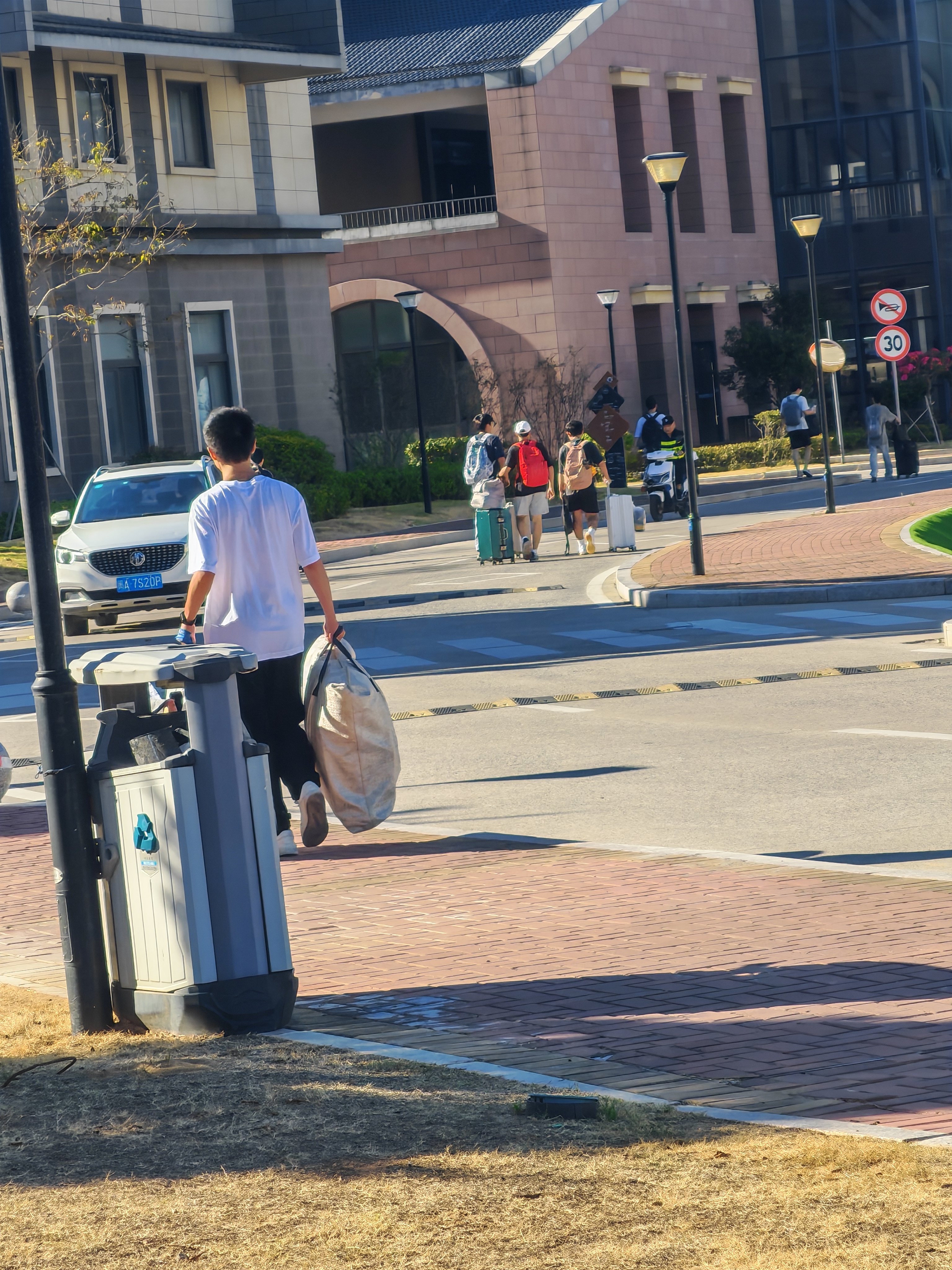 返校日当天,同学们按照既定流程有序通过校门。整个过程井然有序,展现了智产学子们良好的精神风貌。